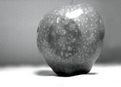 圖 2b: 紅蘋果的近紅外成像。通過近紅外成像,瘀傷顯而易見。很容易檢查表皮上的任何缺陷。