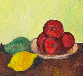 圖 5a: 這幅色彩豐富的 水果 圖是費(fèi)城畫家Nicole Koenitzer的作品,這幅畫詳細(xì)說明了畫家的作畫計劃過程。通過利用近紅外波段來檢測繪圖,用戶可以了解該名畫家的作畫思維,從*初的起稿到上顏料,再到細(xì)化作品等階段。