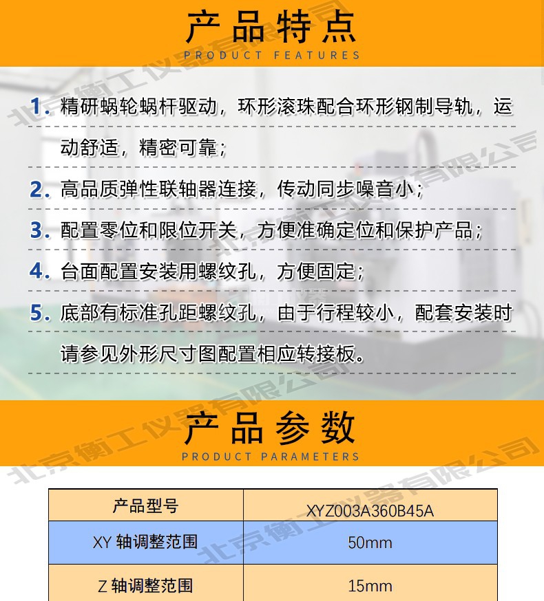 衡工儀器五維電動(dòng)位移臺(tái)采用精研蝸輪蝸桿驅(qū)動(dòng),運(yùn)動(dòng)舒適精密可靠,高品質(zhì)彈性聯(lián)軸器連接,傳動(dòng)同步噪音小,配置零位限位開(kāi)關(guān)方便準(zhǔn)確定位和保護(hù)產(chǎn)品,臺(tái)面配置螺紋孔,方便固定。