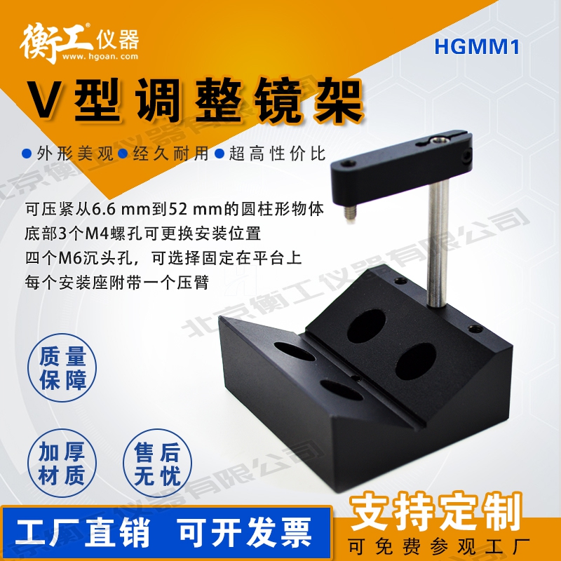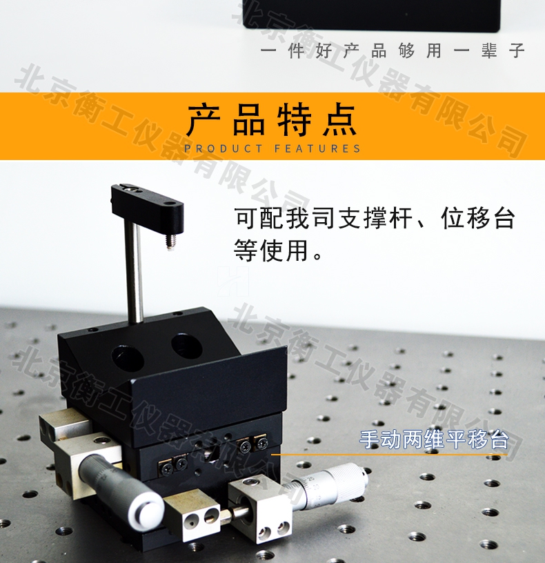 1160v型鏡架可配我司支撐桿、位移臺(tái)等使用,表面氧化黑處理,配合手動(dòng)一維平移臺(tái)。