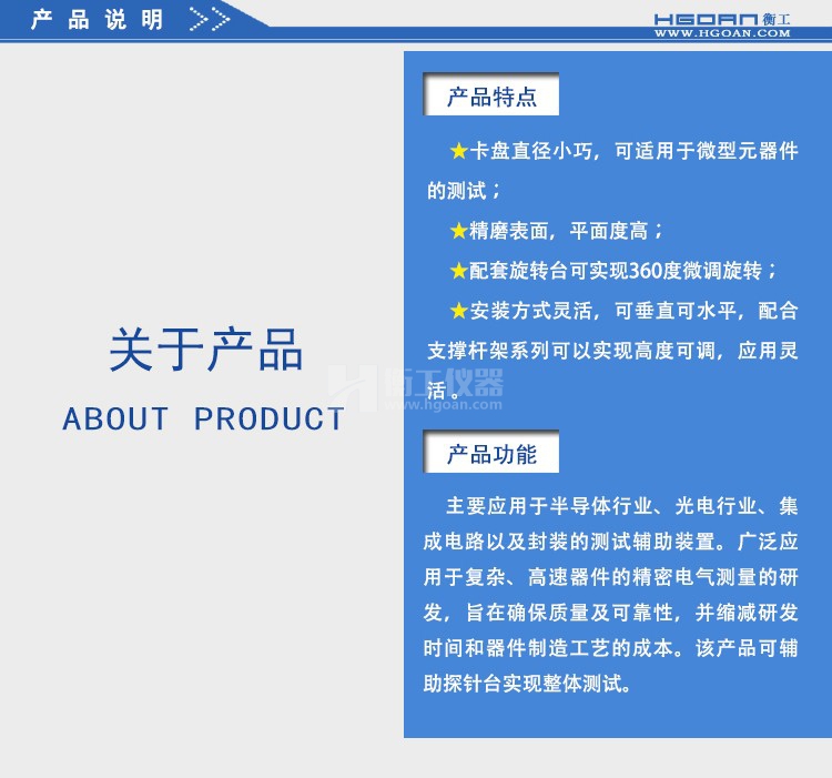 HGXP20卡盤直徑小巧,適用于微型元器件的測(cè)試,,精磨表面,平面度高。配套旋轉(zhuǎn)臺(tái)可實(shí)現(xiàn)360°微調(diào)旋轉(zhuǎn)。