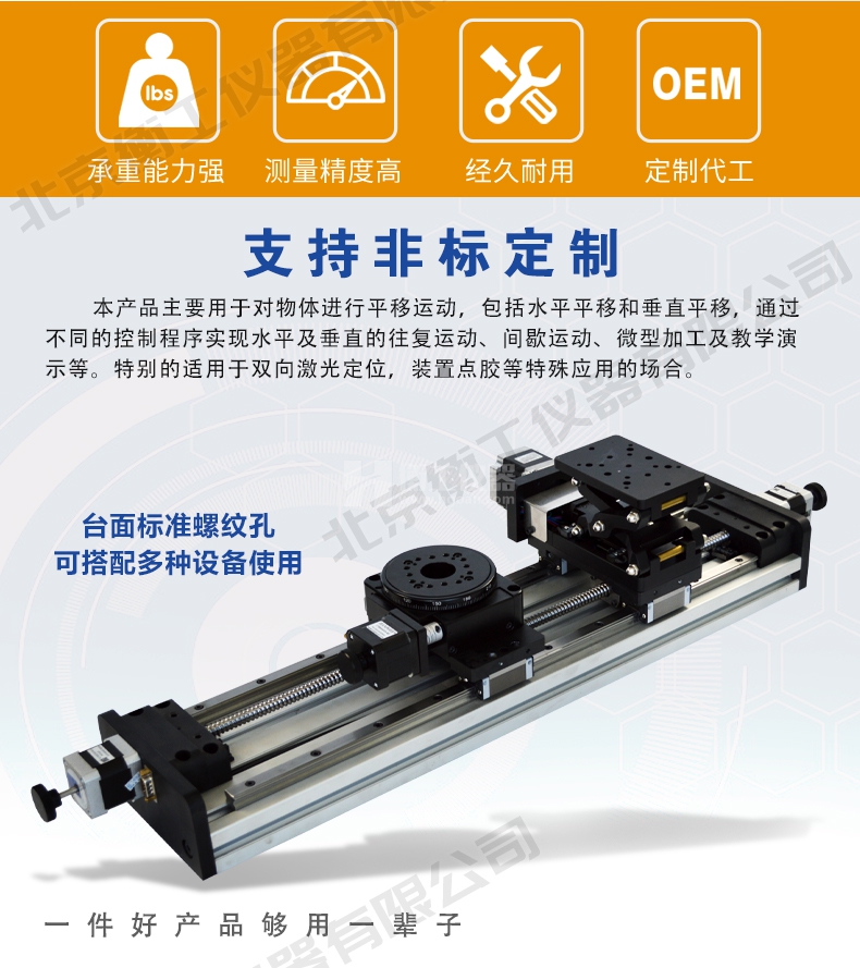 本產(chǎn)品主要用于對物體進(jìn)行平移運動,包括水平平移和垂直平移,通過不同的控制程序?qū)崿F(xiàn)水平及垂直的往復(fù)運動、間歇運動、微型加工及教學(xué)演示等。特別的適用于雙向激光定位,裝置點膠等特殊應(yīng)用的場合。