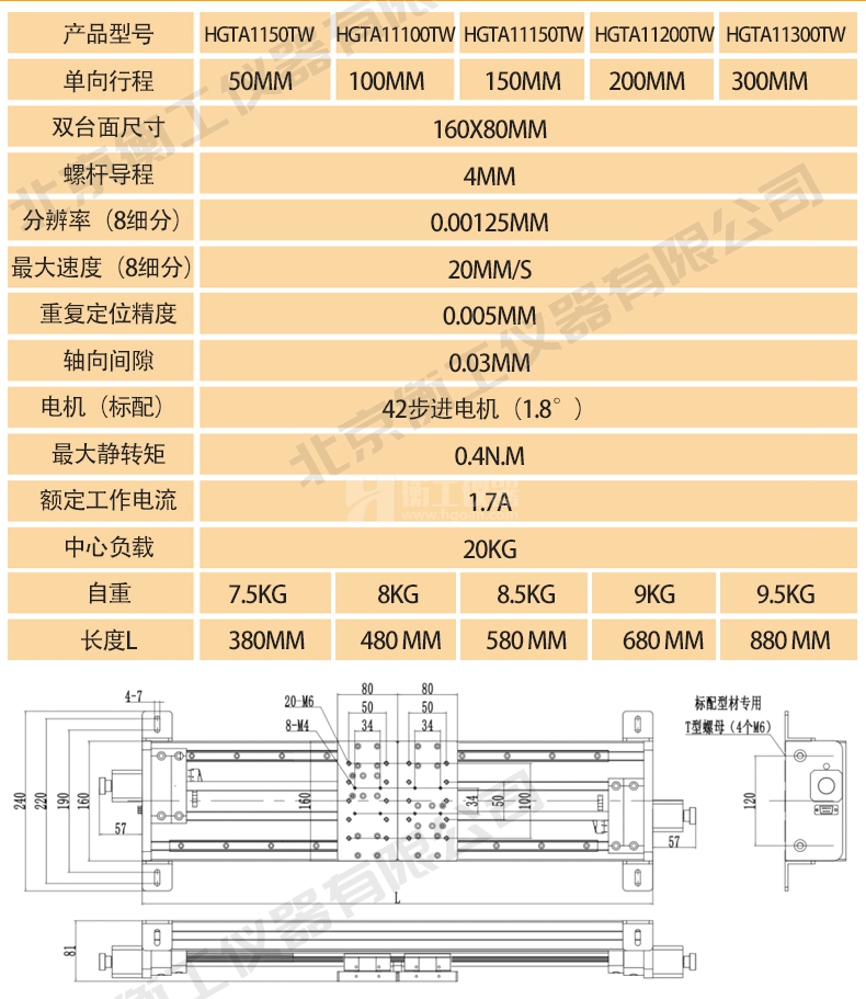 HGTA11TW 系列雙向電動平移臺
